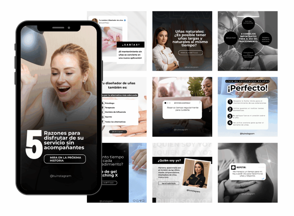 ¡50 publicaciones + subtítulos PROFESIONALES para promocionar tus servicios en redes sociales de una manera SENCILLA, RÁPIDA y extremadamente profesional!